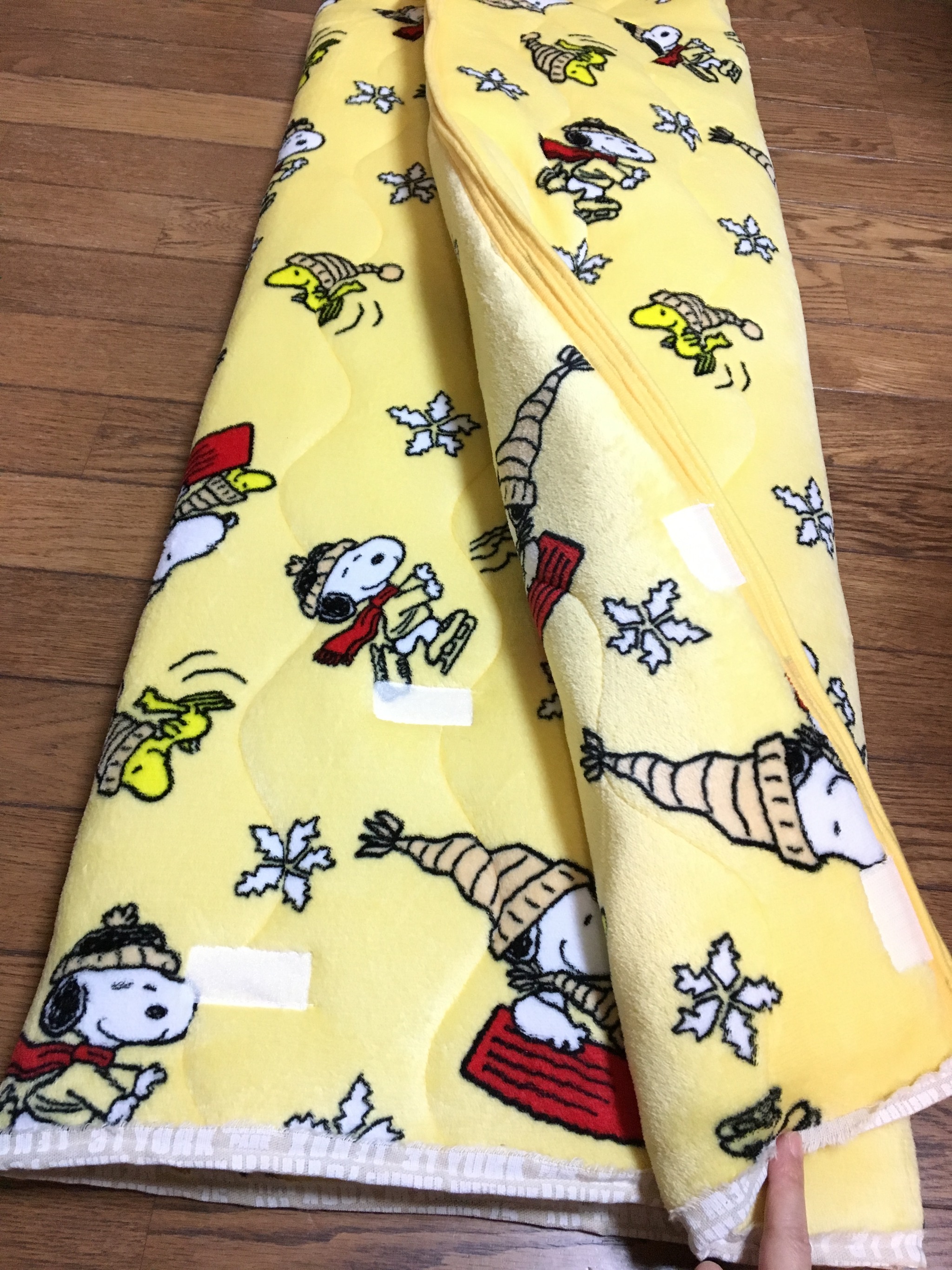 スヌーピー柄でひざ掛け作ってみました(o^^o)